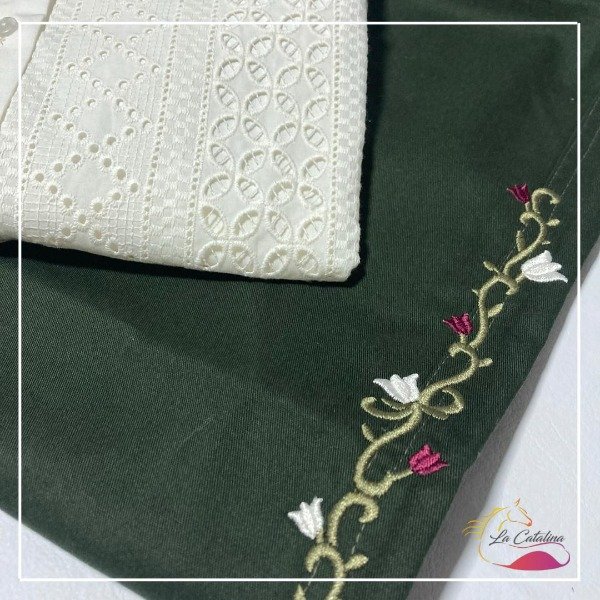 Bordada en ambas piernas.